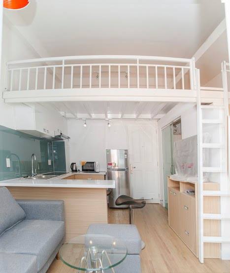 + Căn có gác loại 35 mét vuông, cửa sổ, nội thất đầy đủ nhà bếp, bar, bếp, phòng khách đẹp 495 usd
